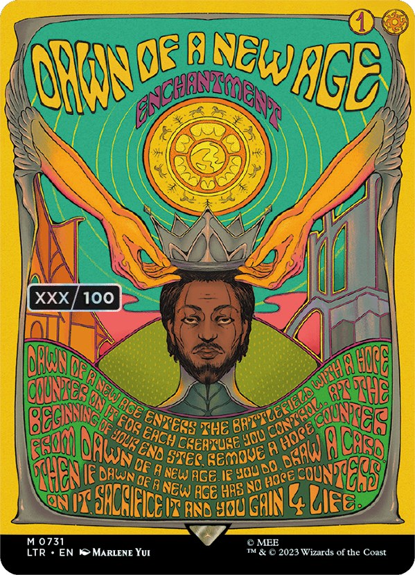 At the beginning of your end step, remove a hope counter from Dawn of a New Age. If you do, draw a card. Then if Dawn of a New Age has no hope counters on it, sacrifice it and you gain 4 life.